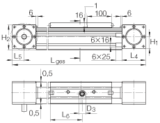 - L2 = 總行程 + L1 + 12 L tot = 總行程 + L1 + 12 + 2 x L4 總行程= 有效行程 + 2 x S(mm) 注意:允差S指一個安全范圍,應該至少為85 mm。 最大支承軌長度8000 mm。
